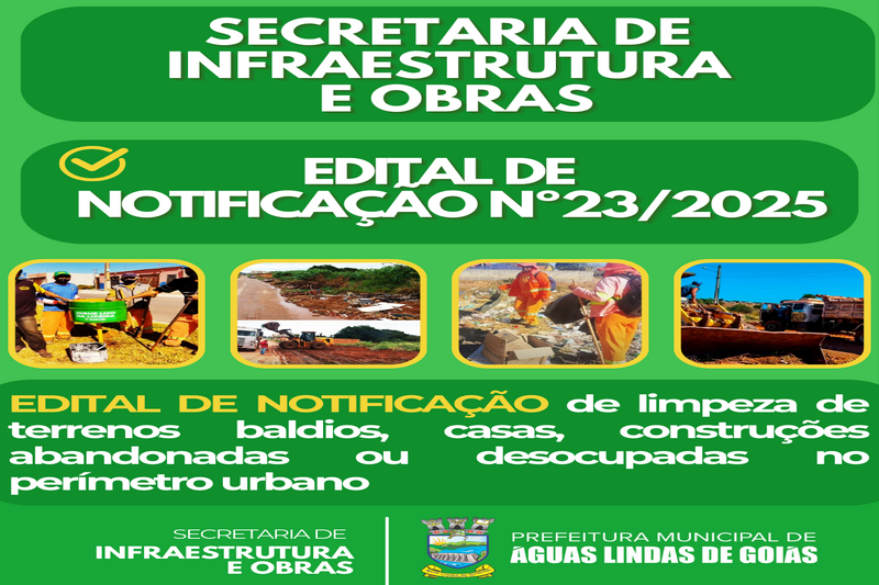 O Município de Águas Lindas de Goiás, através da Secretaria Municipal de Infraestrutura e Obras resolvem: